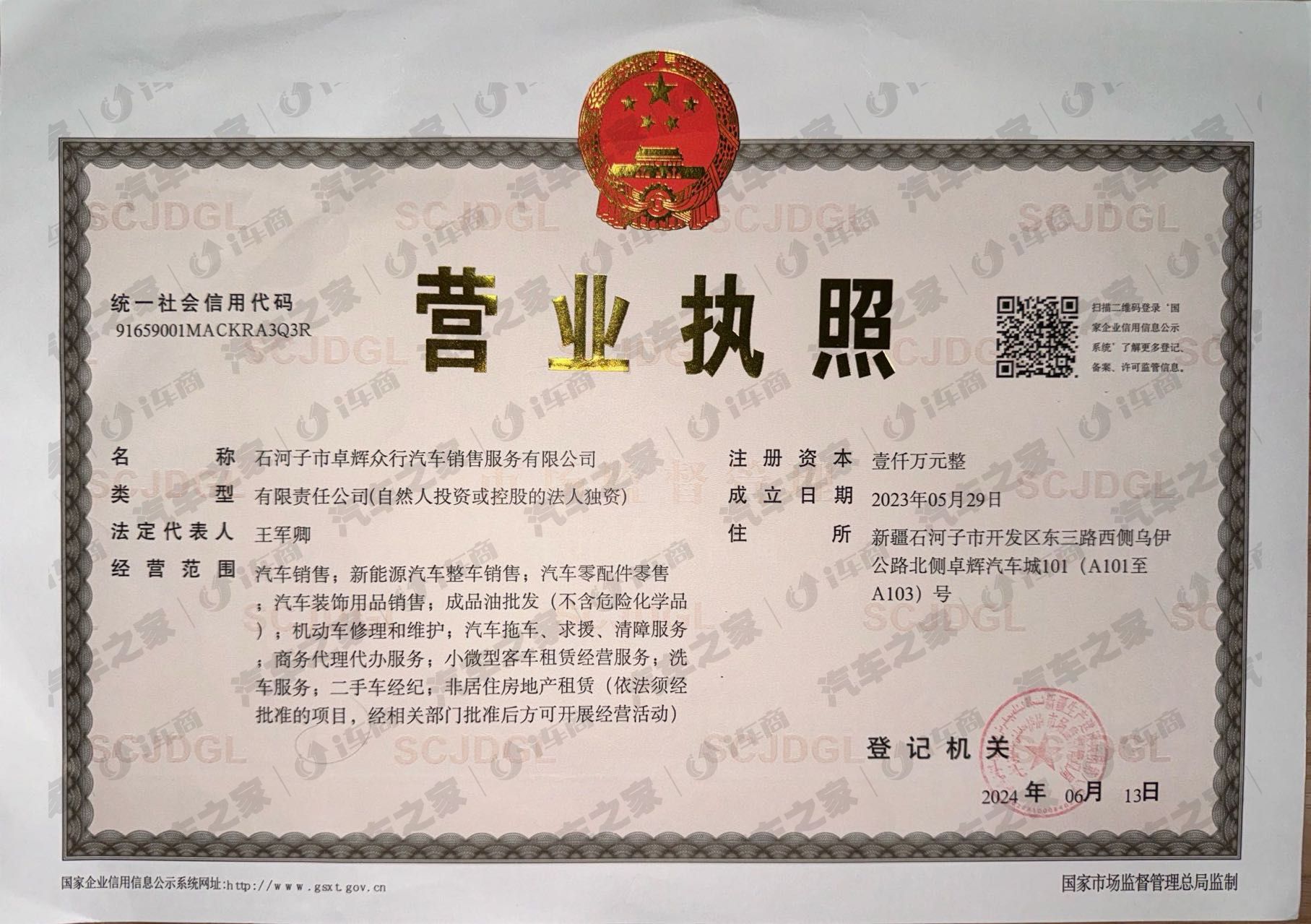 新疆石河子市开发区东三路西侧乌伊 公路北侧卓辉汽车城101(A101至 A103)号