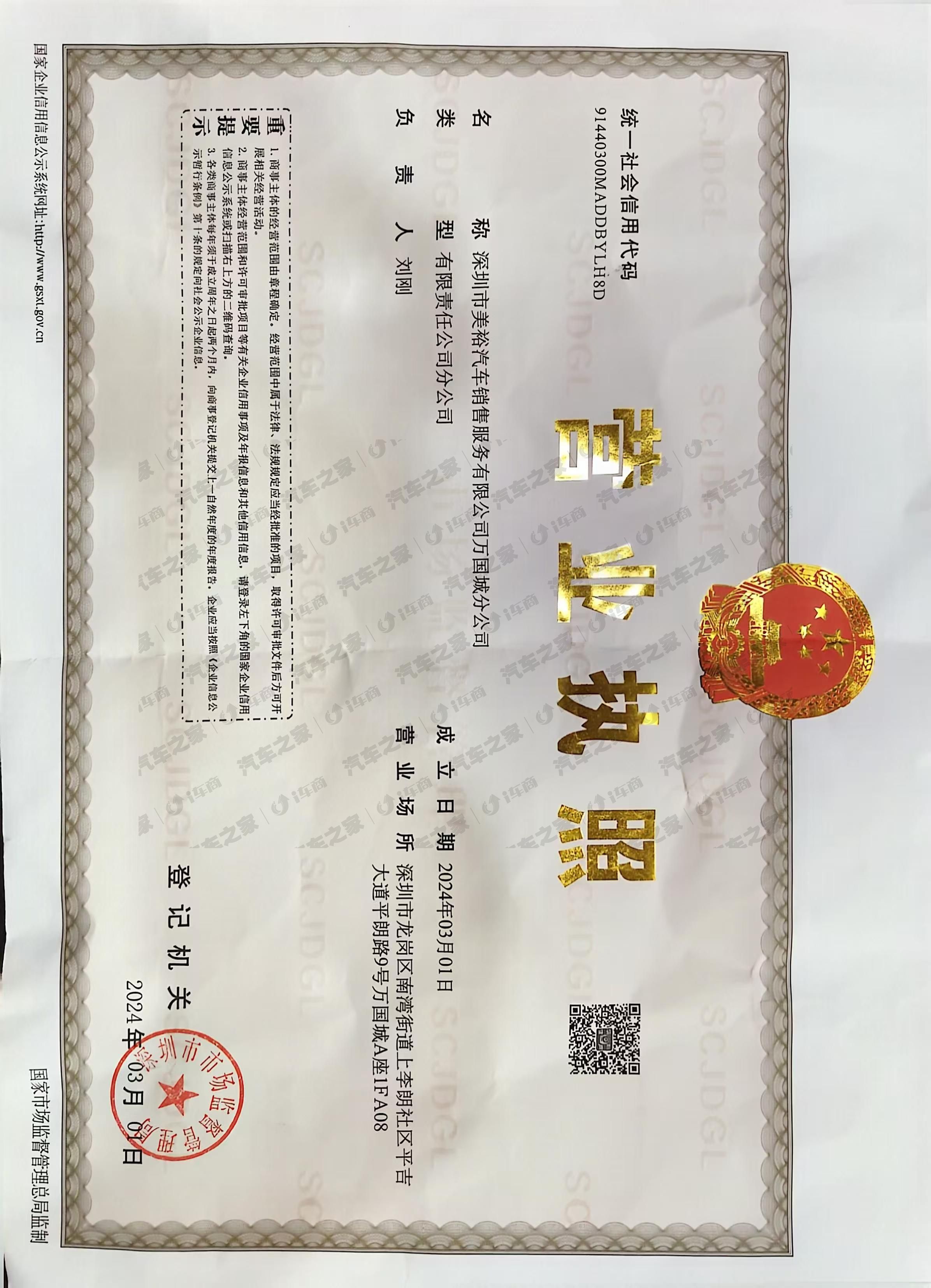 深圳市美裕汽车销售服务有限公司万国城分公司