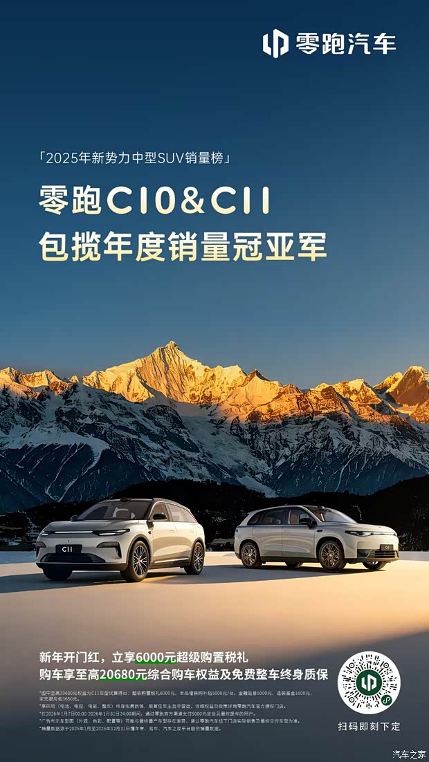 #零跑C10 #零跑C11 双车包揽2025年新势力中型SUV销量冠亚军 新年开门红,选大电池超级增程中型SUV #除了零跑还是零跑 https://mp.weixiqq.com/s/TqNDCNzXXJqLhcB4qrZsA