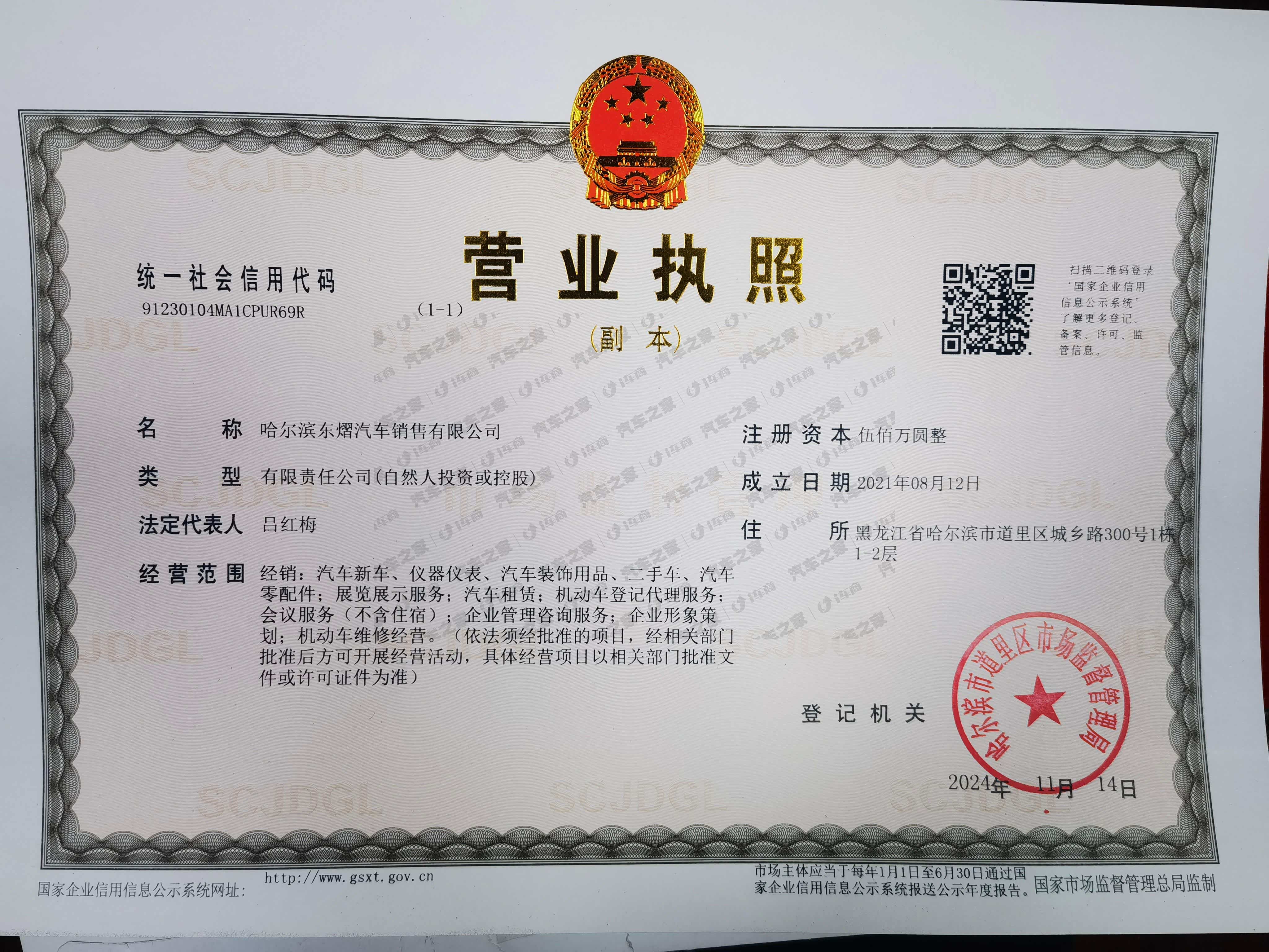 哈尔滨东熠汽车销售有限公司