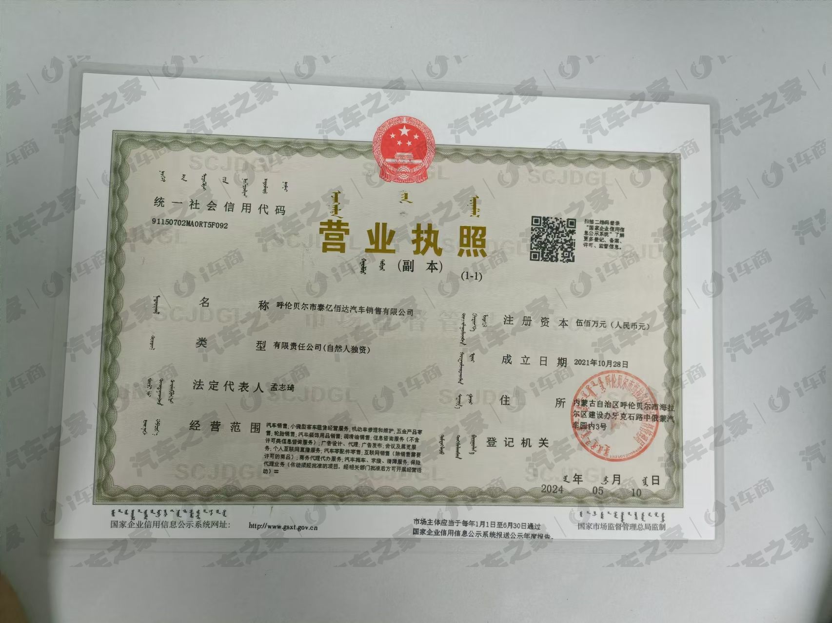 呼伦贝尔市泰亿佰达汽车销售有限公司