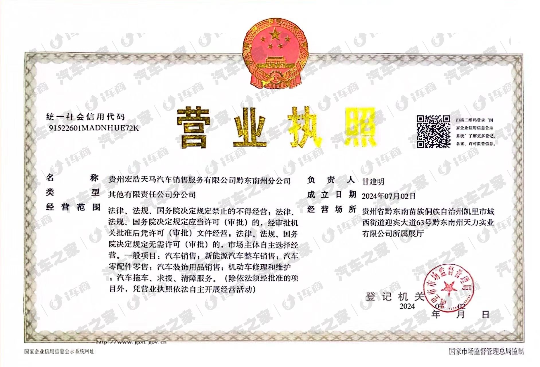 贵州宏浩天马汽车销售服务有限公司黔东南州分公司