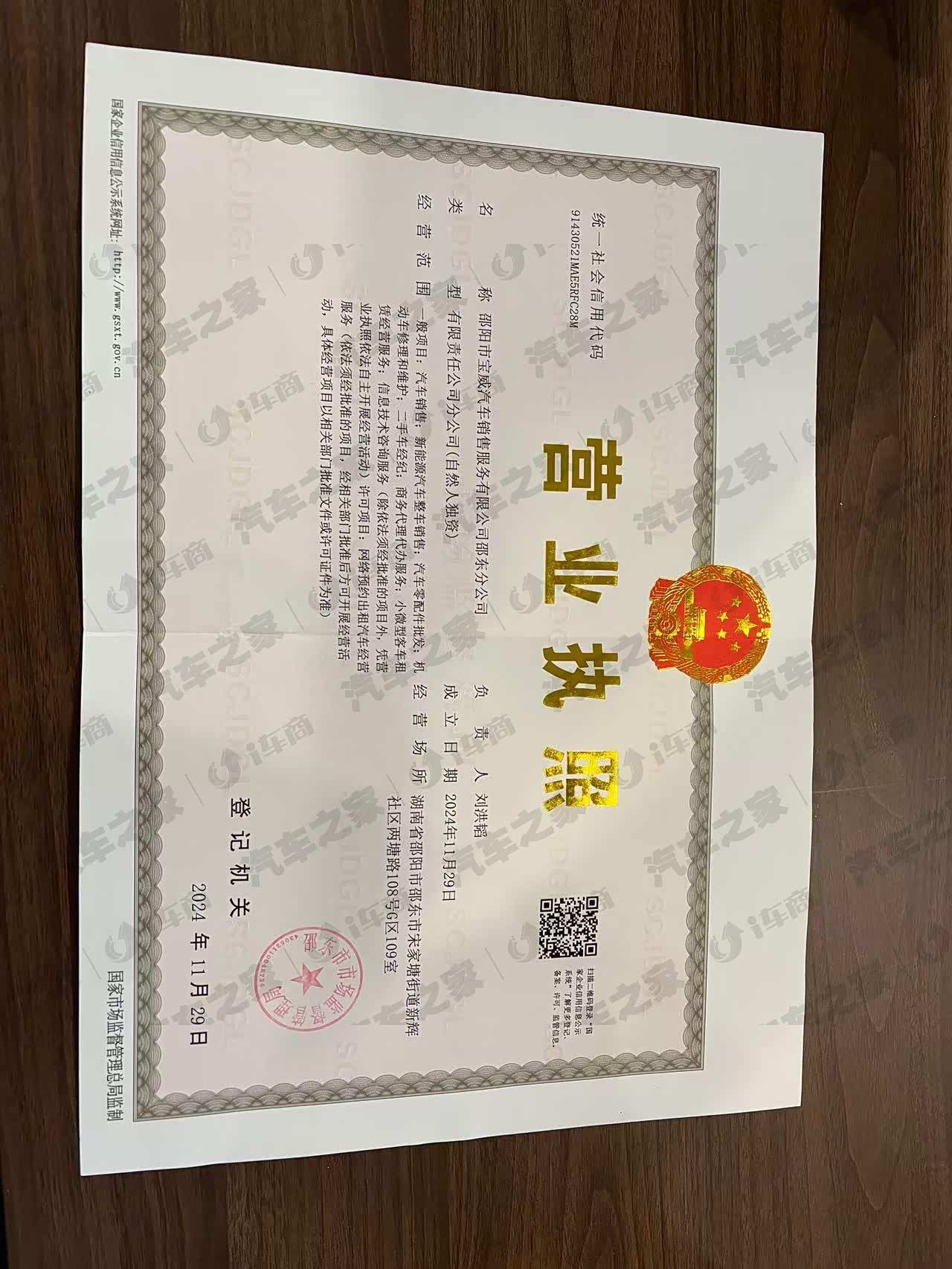 邵阳市宝威汽车销售服务有限公司邵东分公司