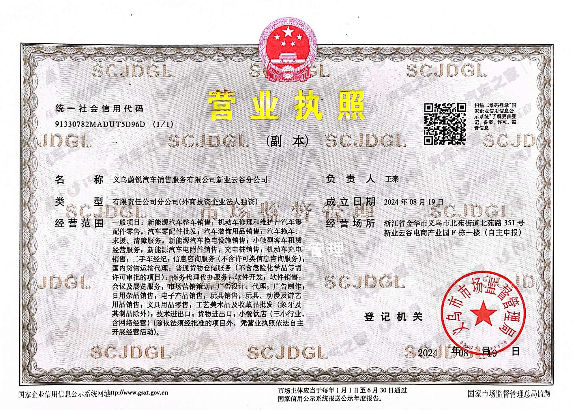 义乌蔚锐汽车销售服务有限公司新业云谷分公司
