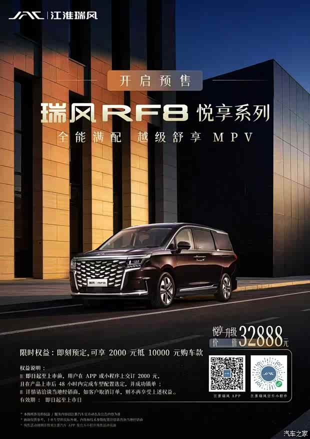 限时下订2026款瑞风RF8悦享系列,即刻锁定“2000元抵10000元”的超值早鸟权益!