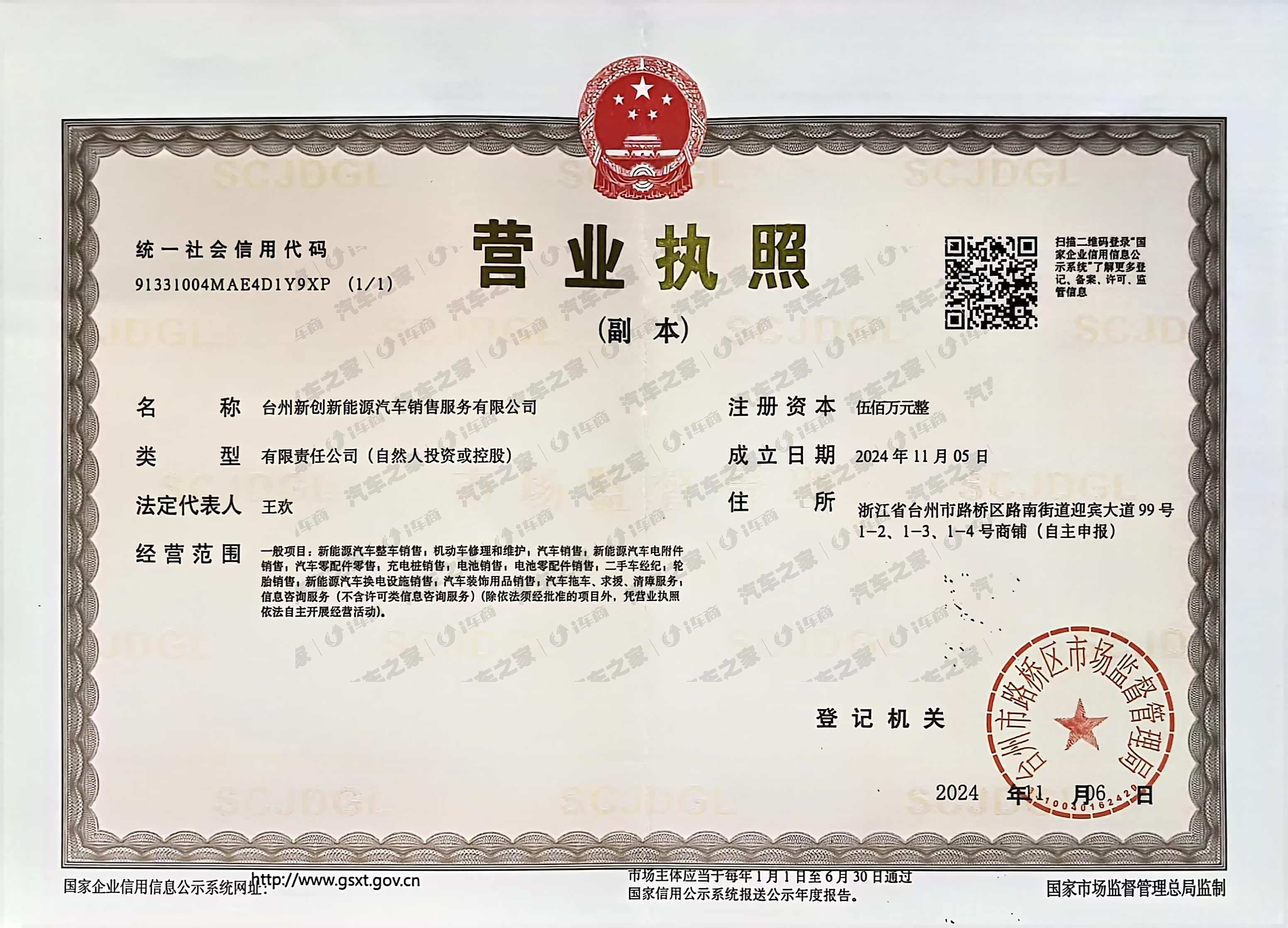 台州新创新能源汽车销售服务有限公司