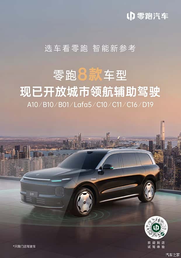 零跑8款车型城市高阶领航已上线! 零跑旗下8款车型 现已开放城市领航辅助驾驶 覆盖日常通勤与复杂城市场景的智能行车需求 从“驾驶”变为“智享” 让每一次出行都更加从容、安全。 📍欢迎到店试驾,亲身体验城市领航辅助驾驶带来的便捷与安心。 #零跑汽车 #零跑A10 #零跑B10 #零跑B01 #零跑Lafa5 #零跑C10 #零跑C11 #零跑C16