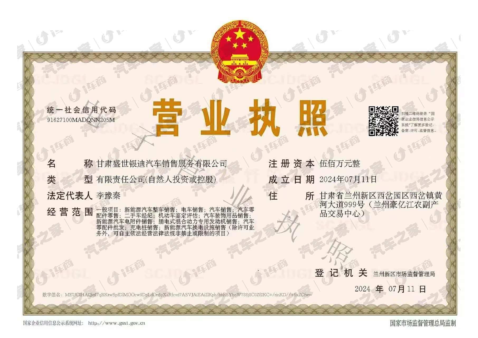 甘肃盛世银迪汽车销售服务有限公司