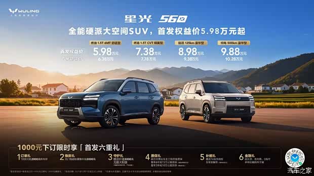 全能硬派大空间SUV」——星光560正式亮相2025东盟国际车展,并同步全球线下首发。新车共推出四款车型配置:燃油1.5T 6MT舒适型、燃油1.5T CVT精英型、插混125km豪华型及纯电500km豪华型。为回馈用户,五菱带来了更硬的首发权益价,对应四款配置分别为5.98万元、7.38万元、8.98万元和9.88万元,原首发抢订价为6.38-10.28万元。