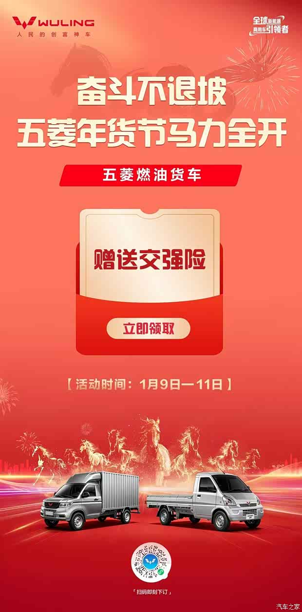 购五菱燃油货车即享:购置税减半+赠送交强险;