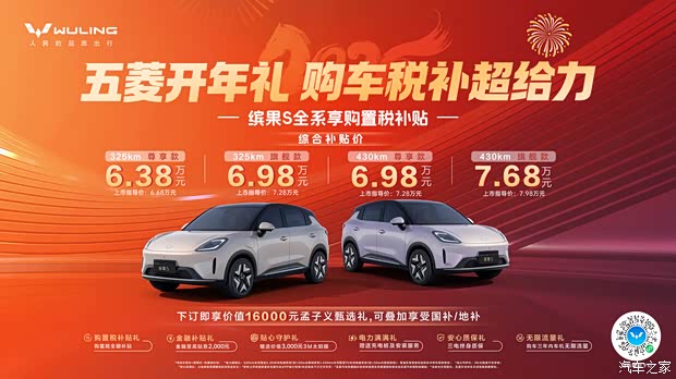 缤果S共推出325km尊享款、325km旗舰款、430km尊享款、430km旗舰款四款配置,上市指导价为6.68万-7.98万元,叠加置换政策可享置换补贴价6.38万-7.68万元,更可叠加享受国家/地方购车补贴。