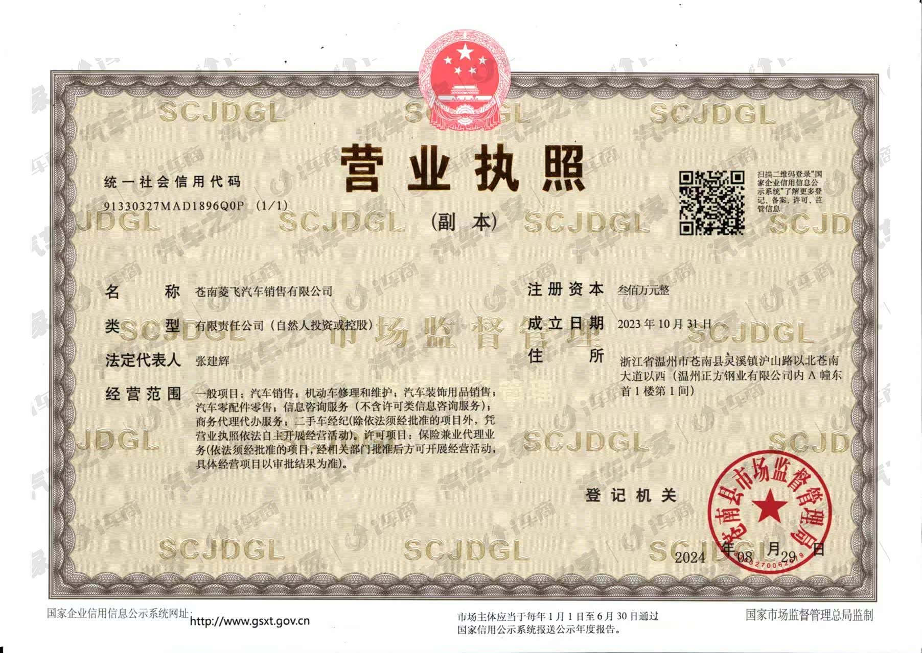 浙江省温州市苍南县灵溪镇沪山路以北苍南大道以西(温州正方钢业有限公司内A幢东首1楼第1间)