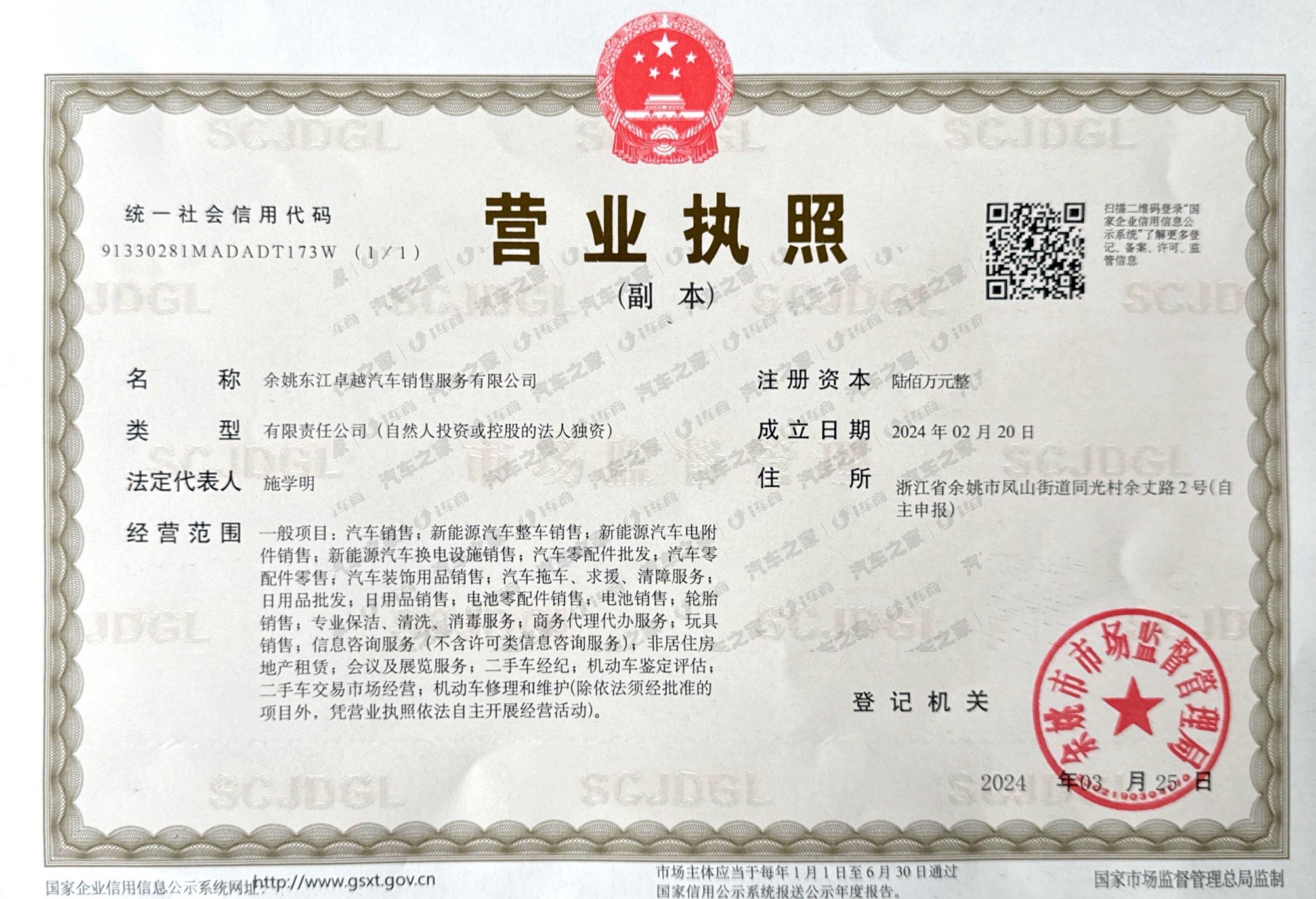 余姚东江卓越汽车销售服务有限公司