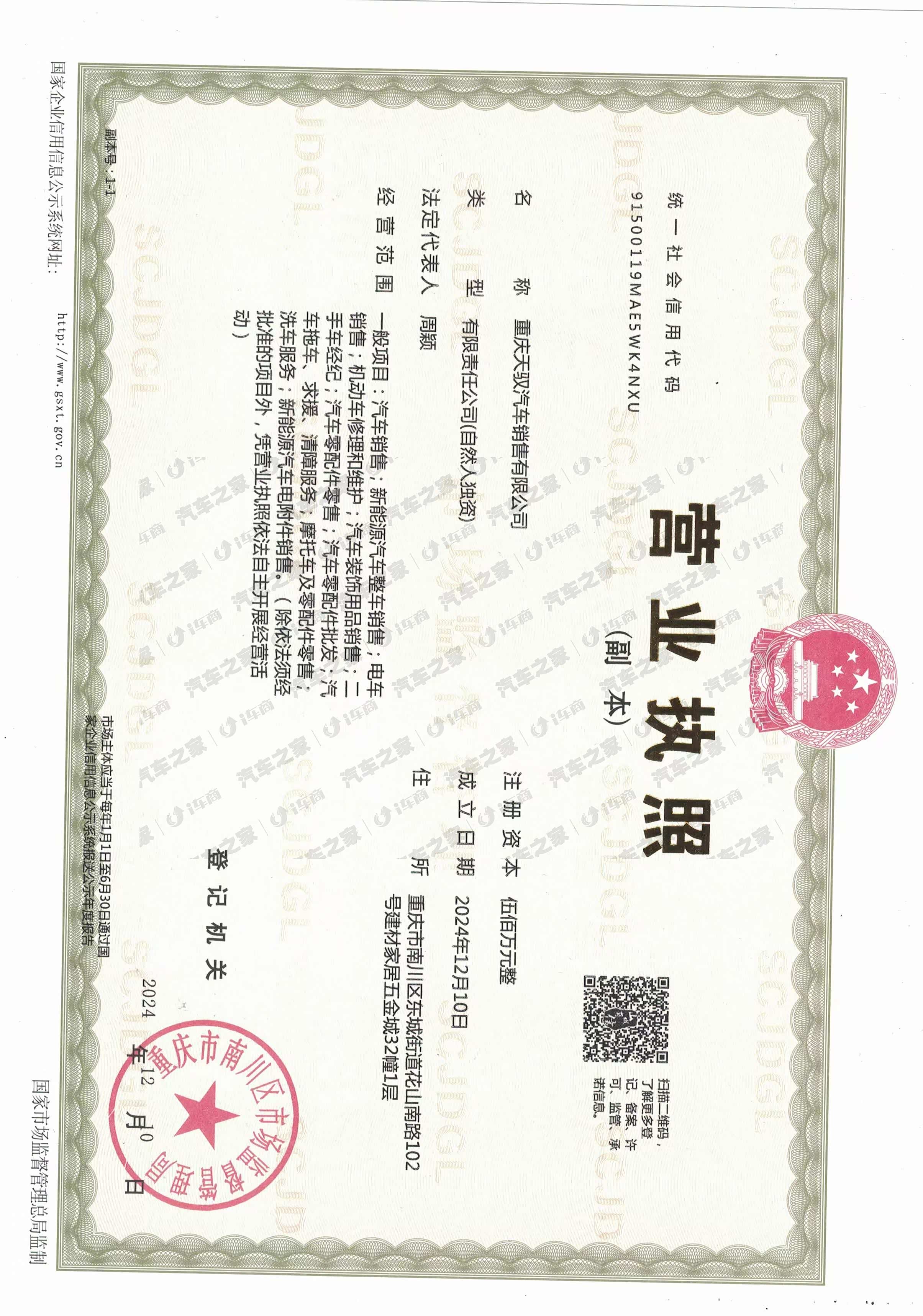 重庆天驭汽车销售有限公司