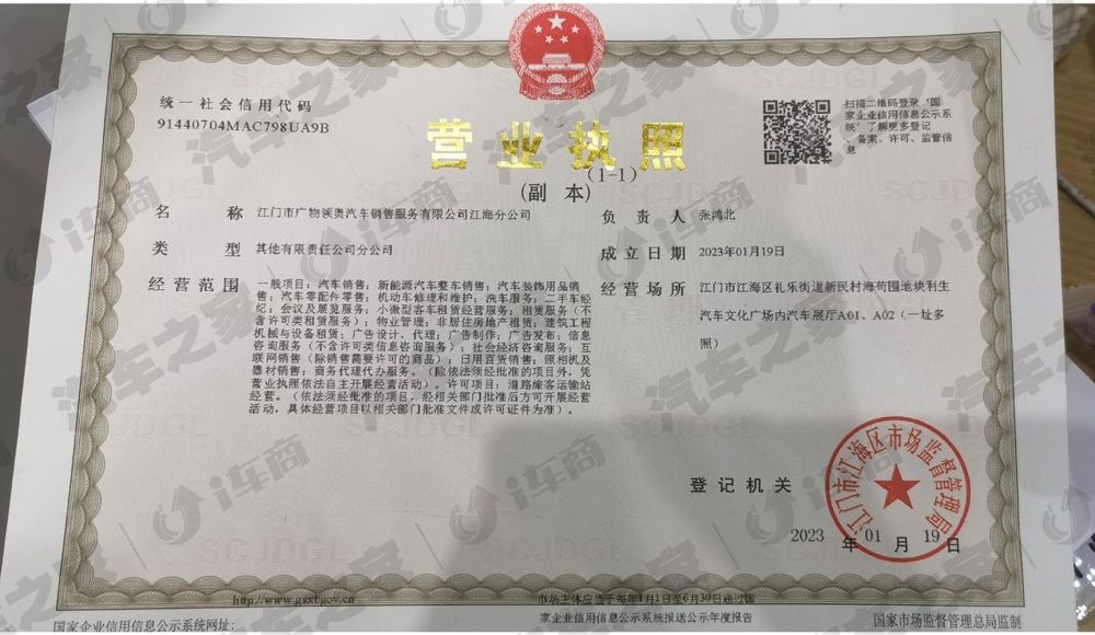 江门市广物领奥汽车销售服务有限公司江海分公司