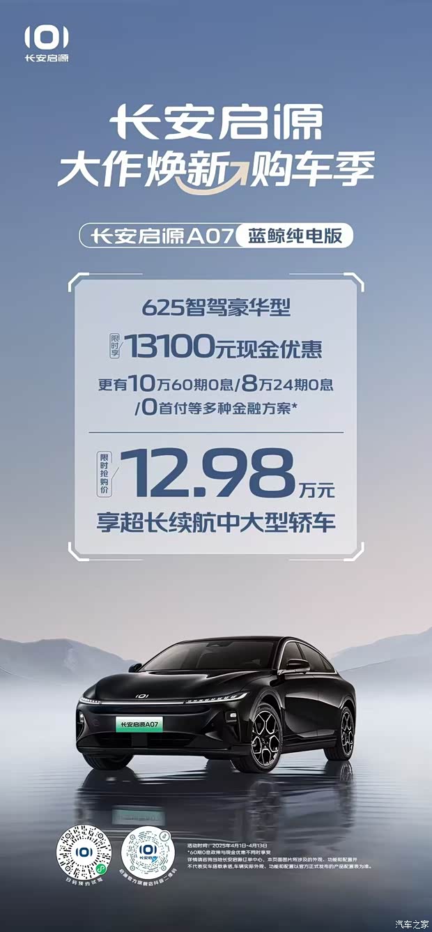 长安启源A07蓝鲸纯电版 625智驾豪华型12.98万元起