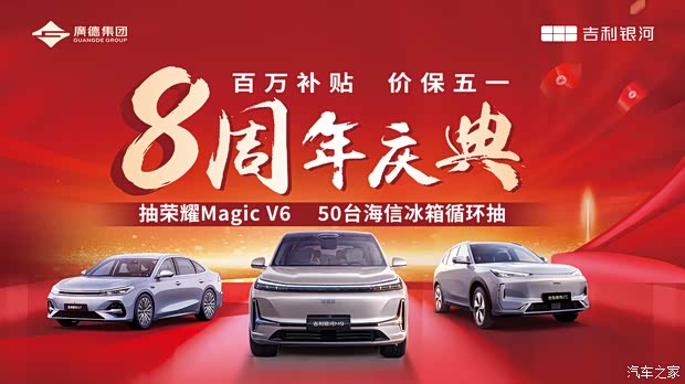 岁月鎏金,感恩同行。八周年不是终点,而是新的起点。广德集团吉利银河将继续怀揣热爱,秉持匠心,以更优质的产品、更贴心的服务,回馈每一份信任与陪伴,与所有车主朋友一起,奔赴下一段星辰大海,共赴更美好的出行未来。