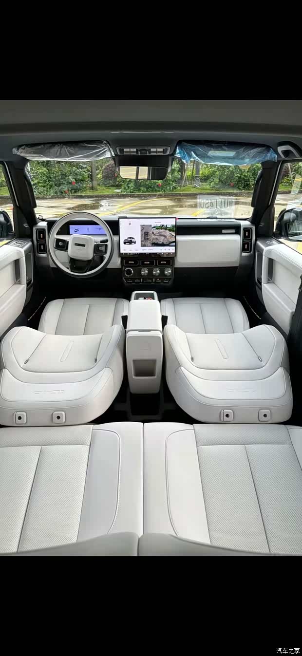 虽然新车配备了大尺寸中控屏,不过车内依旧拥有一些复古的设计元素,例如中控台下方拥有大量的物理按键和旋钮设计,并且旁边还可以看到裸的铆钉,在方便常用功能操作的同时也很好地提升了内饰的质感。此外,车内还有很多有意思的小设计,例如空调出风口附近的铆钉金属铭牌“生来为玩”,以及方向盘旁边的越野图案等,处处彰显着这款车的个性风格。