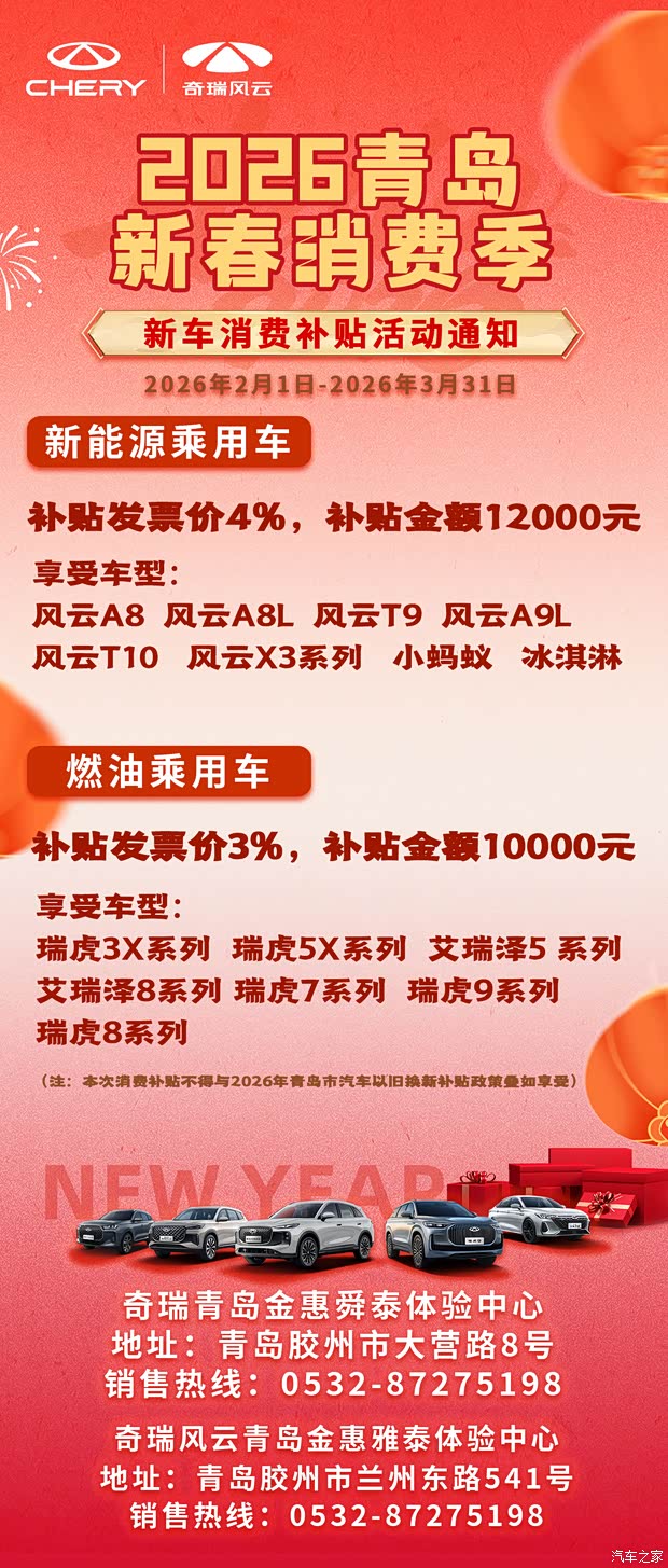 2026青岛新车消费补贴重磅上线,想换车、买新车的朋友千万别错过!本次补贴力度超大,为广大车友送上实实在在的购车红利,助你轻松把爱车开回家。