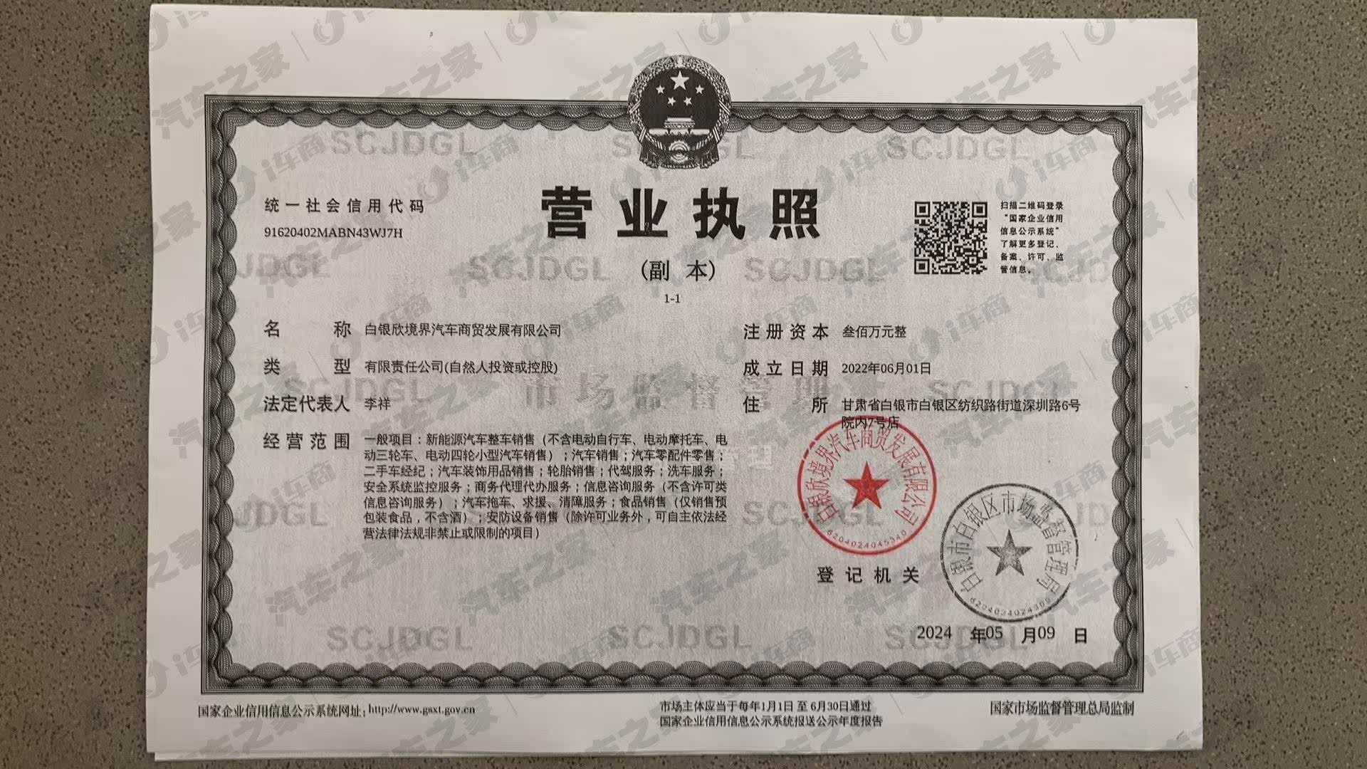 白银欣境界汽车商贸发展有限公司