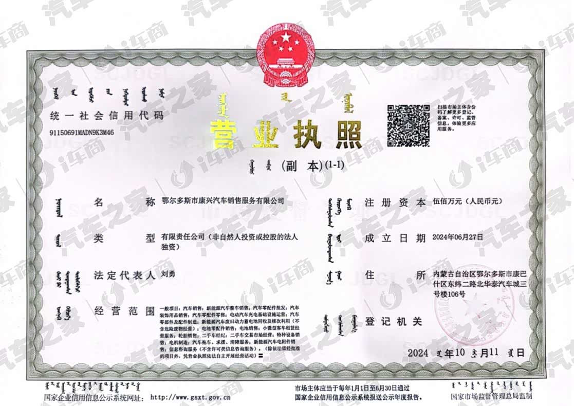 鄂尔多斯市康巴什区东纬二路北华泰汽车城三号楼103