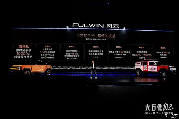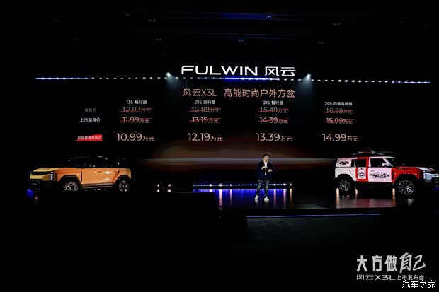 9月17日,风云X3L于成都举行上市发布会,正式售价为10.99万元起,共推出四个版本车型,135畅行版售价10.99万、215远行版售价12.19万、215智行版售价13.39万、205四驱高能版售价14.99万。同时,六大官改版型也惊艳亮相,释放个性,演绎方盒的无限可能。