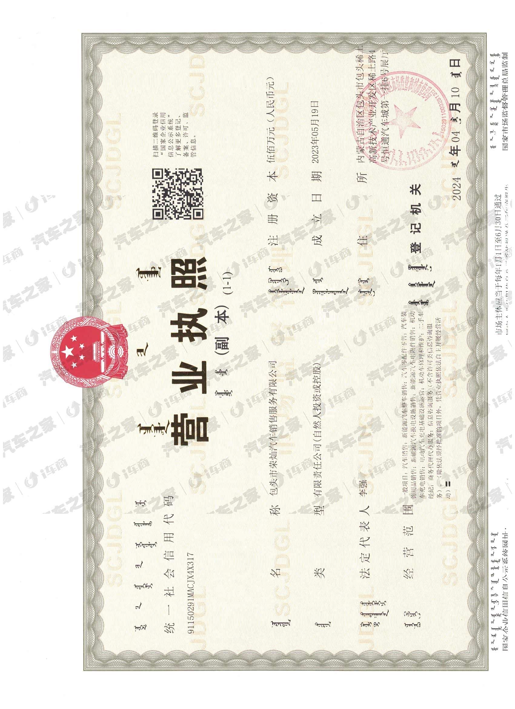 内蒙古自治区包头市包头稀土高新技术产业开发区稀土路4号恒通汽车城第一排6号展厅