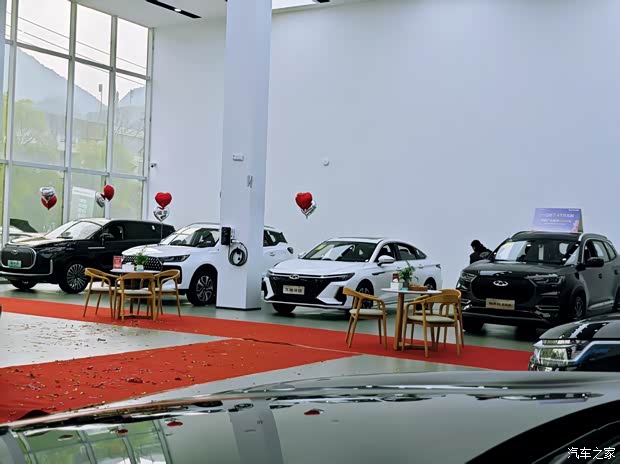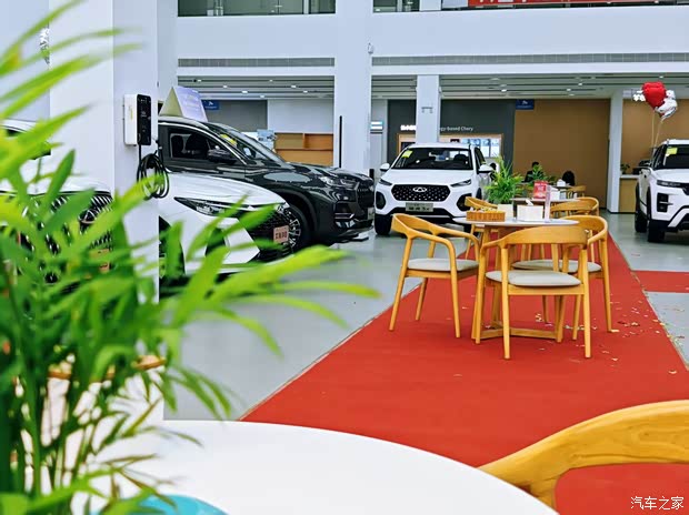 展厅宽敞明亮:展厅面积宽敞,装修风格简约大气,展示区域布局合理,车辆摆放整齐有序,为客户提供了一个舒适、愉悦的看车环境。展厅内还设有休息区,配备了沙发、茶几、饮水机等设施,为客户提供了一个休息和洽谈的场所。