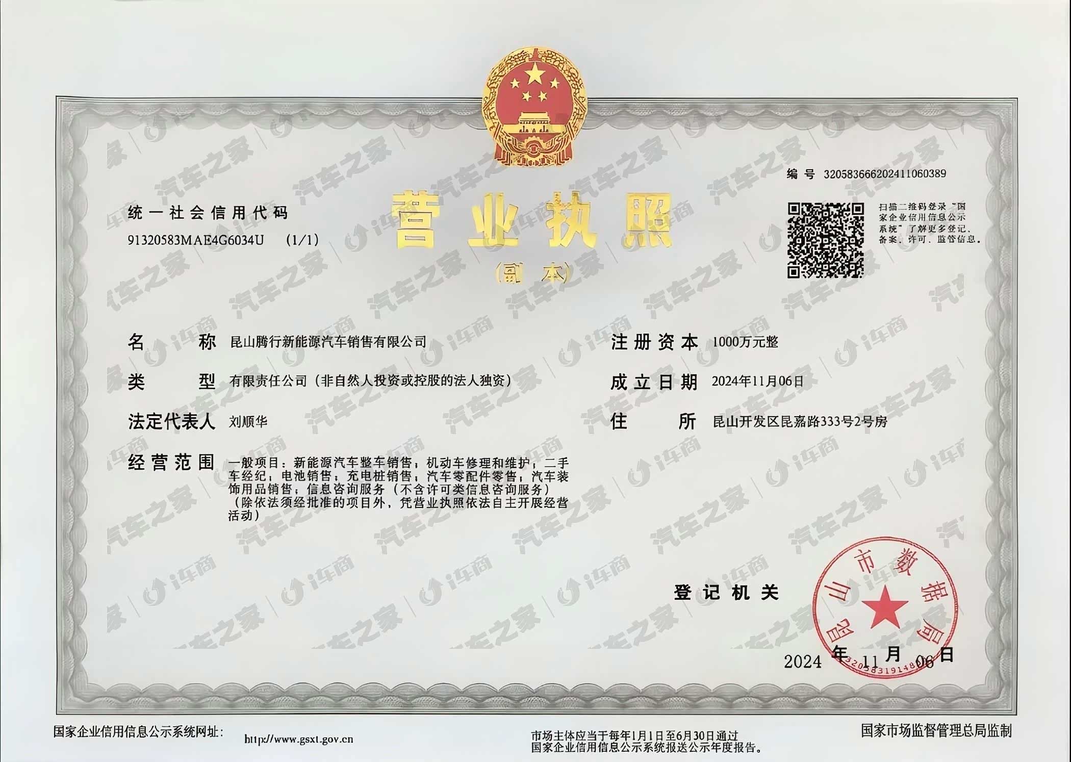 运营主体:昆山腾行新能源汽车销售有限公司