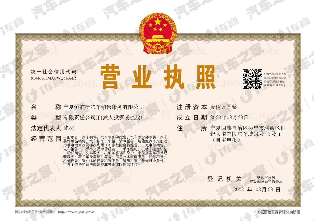 宁夏恒麒捷汽车销售服务有限公司
