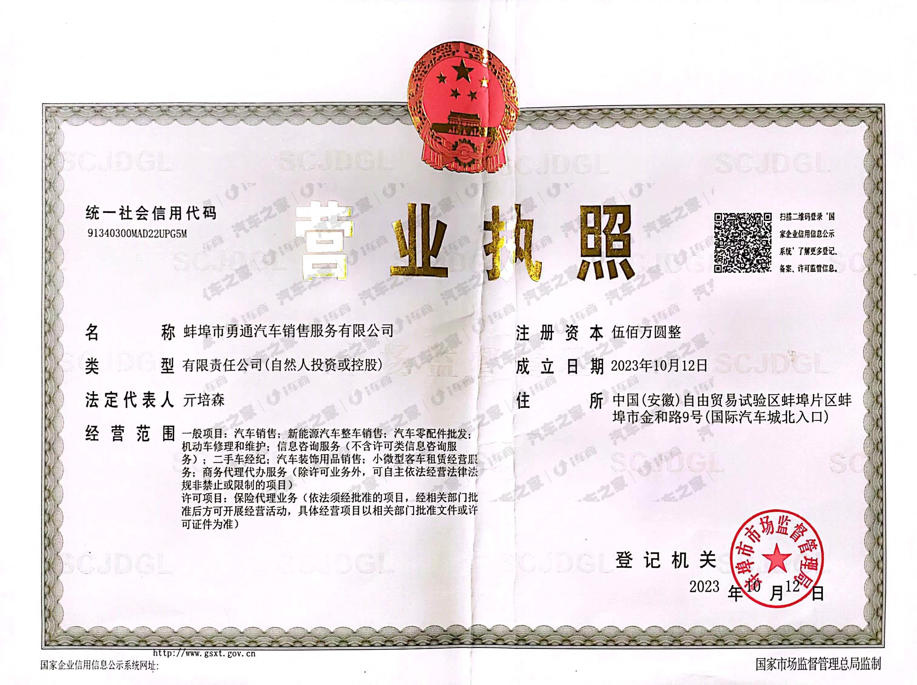 蚌埠市勇通汽车销售服务有限公司
