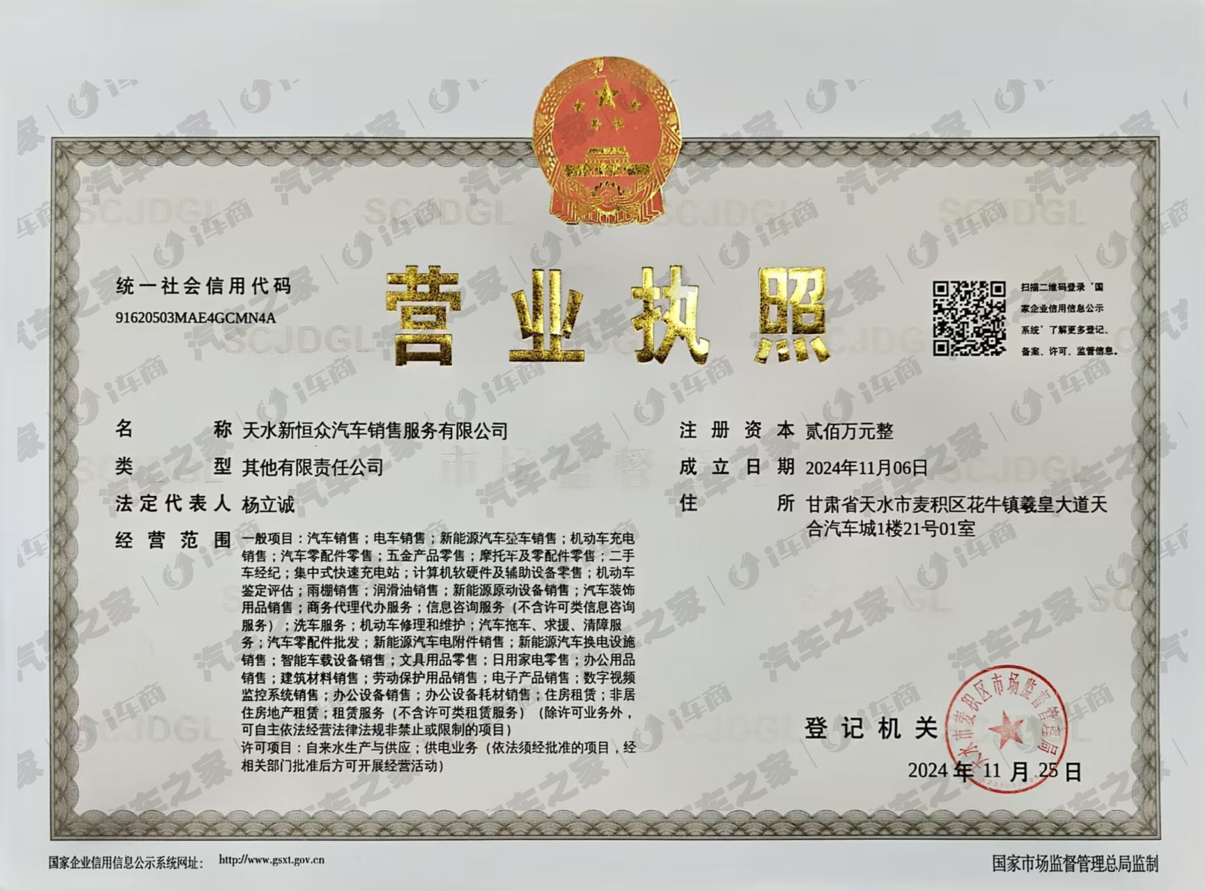 甘肃省天水市麦积区花牛镇羲皇大道天合汽车城1楼21号01室
