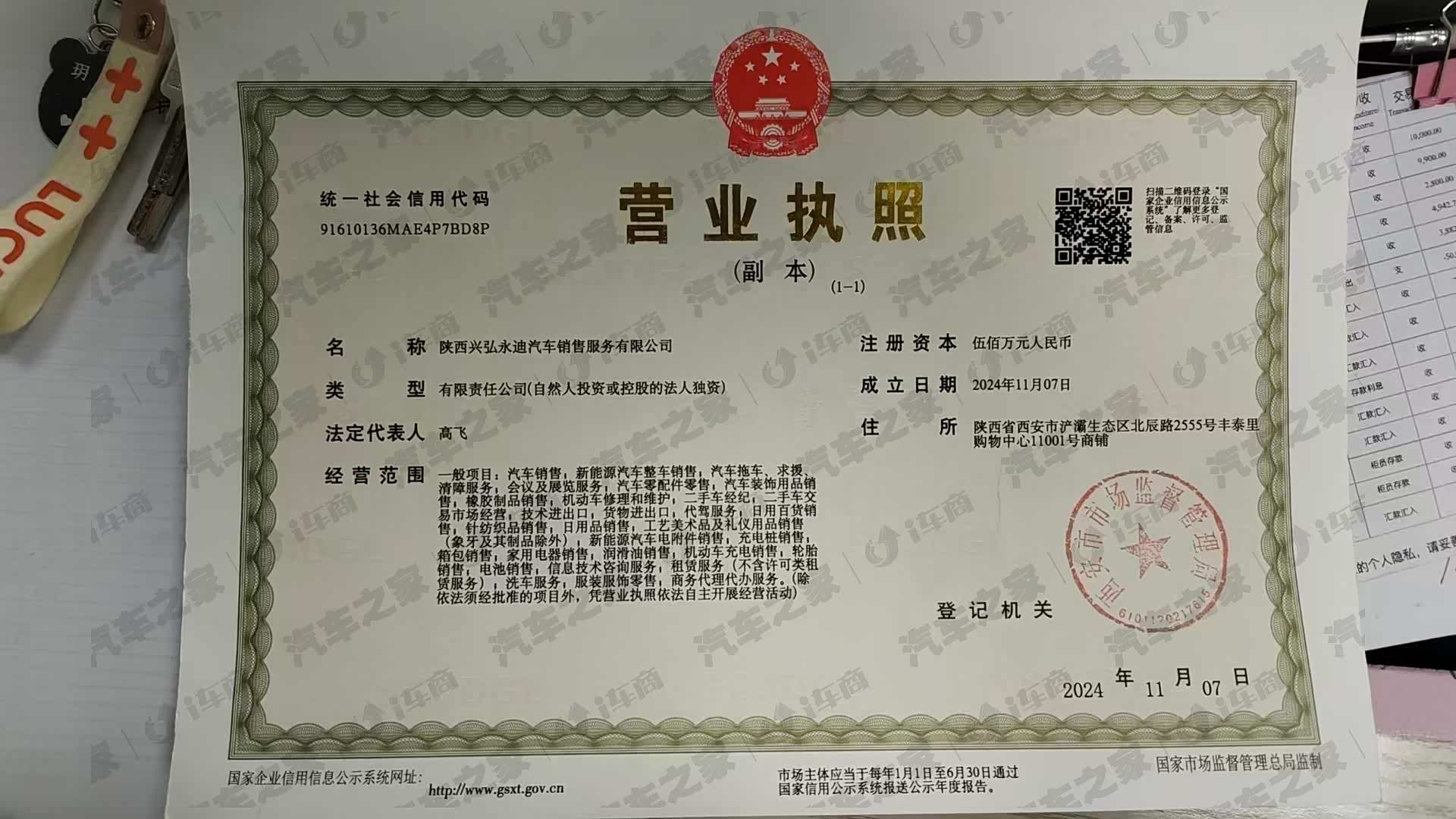 陕西兴弘永迪汽车销售服务有限公司隶属于西安兴迪集团旗下高端比亚迪汽车展厅,于2025年1月08日开业,其地理坐标位于陕西省西安市浐灞生态区北辰大道与欧亚二路交汇处东南角【丰泰里高端汽车园区内】比亚迪王朝展厅,本店拥有强大的企业影响力和市场号召力,秉承"服务于车,用心到人”的理念,以专业的服务,优质的产品,卓越的诚信赢得销售者的信赖; 企业文化:诚信、专业、创新、共赢;坚持诚信为本的经营理念,确保销售车辆质量可靠,服务价格透明公正,行业领先汽车经销商,为客户提供高品质的汽车生活体验;积极履行社会责任,为地方经济发展和社会公益事业做贡献。本店主售车型比亚迪王朝系列全系车型,主要车型为:比亚迪唐L EV;唐L DM;汉L EV;汉L DM;2025款 夏;2025款 唐 DMI 智驾版;比亚迪2025款 汉 DMI 智驾版;2025款 汉EV 智驾版;2025款 宋L DMI 智驾版; 2025款 宋 PRODMI 智驾版;2025款 元PLUS 智驾版;元UP 智驾版;2025款 秦 L DMI 智驾版; 2025款 秦 PLUSDMI 智驾版;2025款 秦PLUSEV 智驾版; 详细车型讲解及车型政策可进店咨询或致电店端电话 029-86619952 029-86613552;