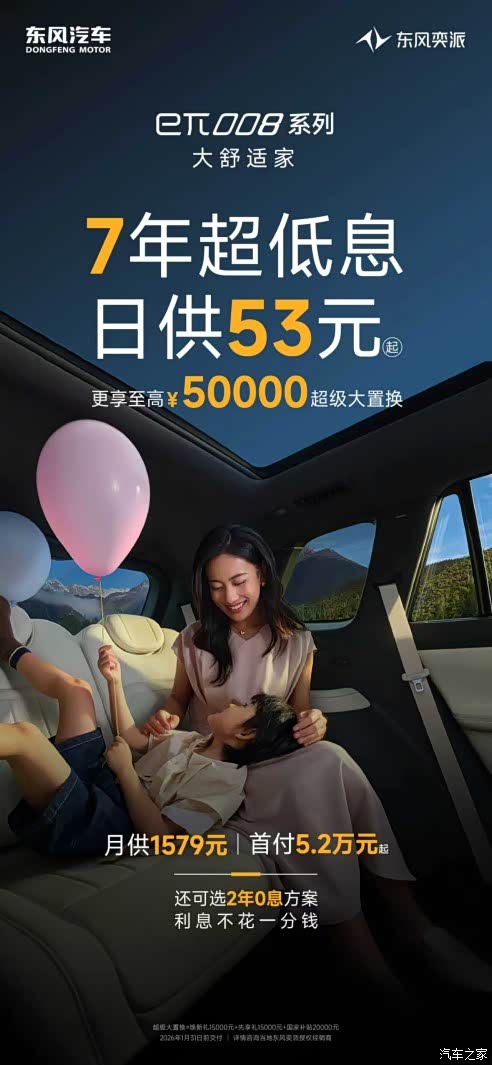 新年刚启,春节购车热潮已提前升温。继特斯la、小米推出“7年超低息”购车金融政策后,各大品牌纷纷亮出底牌,争夺开年第一波消费热情。在这股浪潮中,东风奕派也积极跟进,在此前“国补焕新 购享无忧”福利基础上再度加码,针对全系主力车型推出“7年超低息”金融方案,旨在进一步拉低入手门槛,让更多消费者能够轻松步入高品质新能源出行生活。