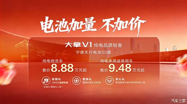 其中创富神车”大拿系列表现尤为亮眼,成为拉动销量的核心引擎。此次大拿V1(宁德天行电池50度)的重磅上市,正是上汽大通深耕商用车市场、精准洞察用户需求的又一力作。
