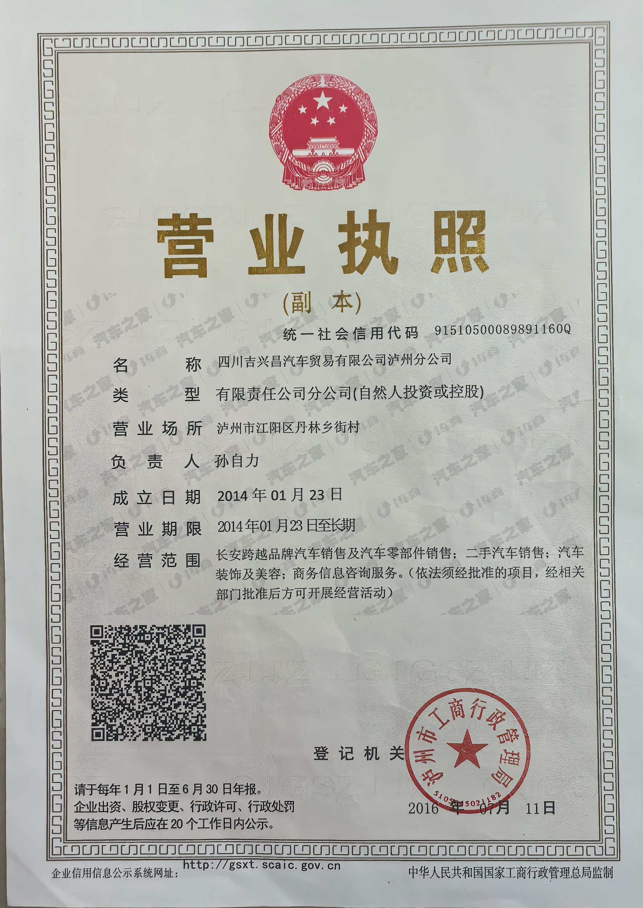 四川吉兴昌汽车贸易有限公司泸州分公司