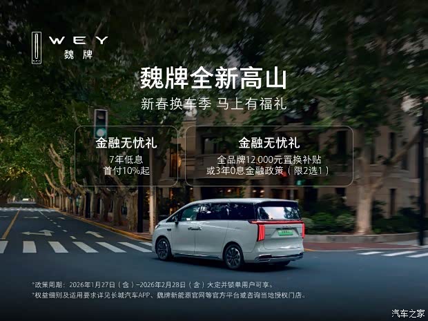 *政策周期:2026年1月27日(含)至2026年2月28日(含)大定并锁单用户可享。