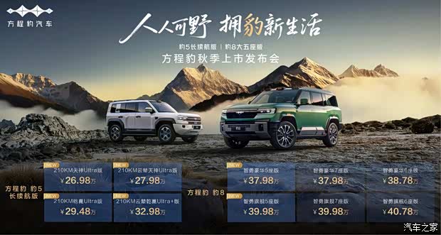本次惊艳上市的豹5长续航版和豹8大五座版,除了智能、性能科技均升级外,更在在续航、结构、舒适与外观层面实现显著提升。