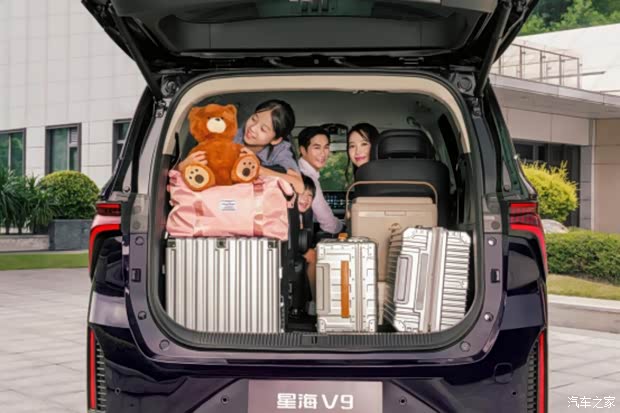 星海V9不仅在续航方面让人放心,宽敞舒适的大空间同样备受用户青睐。其车长超过5.2米,轴距达到3米以上,领先同级的车身尺寸带来了高达85.2%的得房率、5.54平方米的实用面积,即便七座满员,第三排也能让成人从容安坐,远离拥挤带来的不便与尴尬。