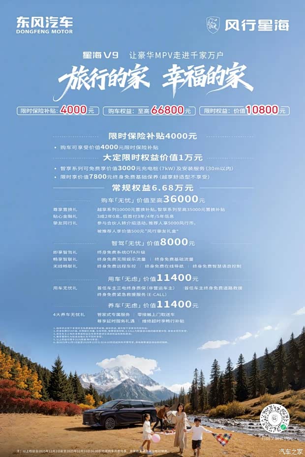 为满足现代家庭对真实生活场景与需求的深度契合,东风风行凭借在MPV市场二十五年的深厚积淀,全面洞察用户痛点,推出风行星海V9越享系列,兼具长续航、大空间、舒适驾乘、强安全和高品质优势,重新定义了豪华MPV的价值标杆。