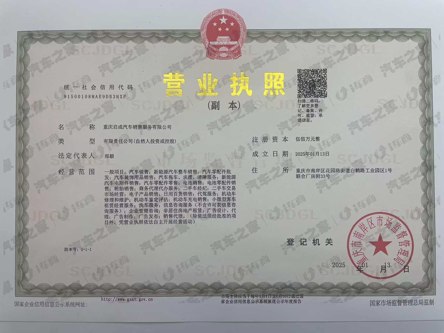 重庆启成汽车销售服务有限公司