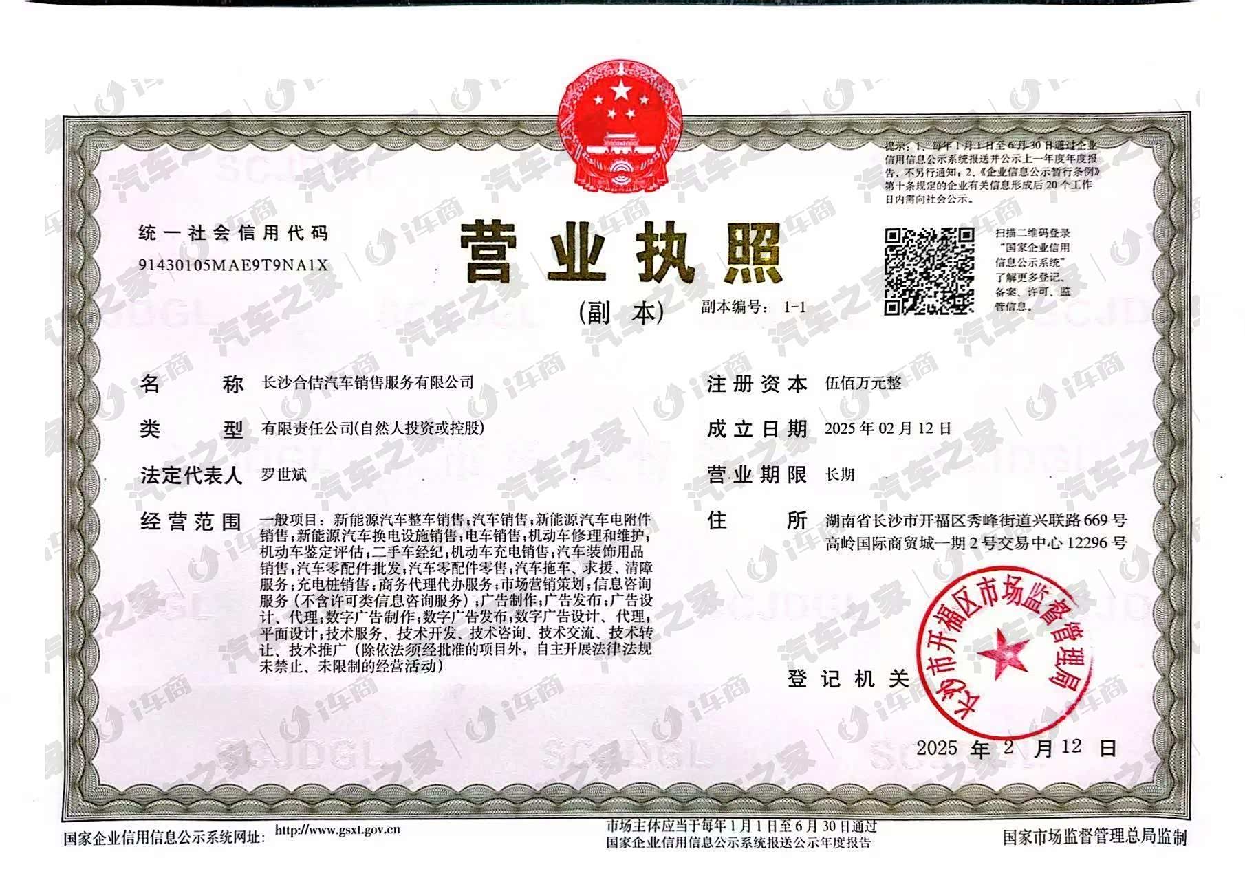长沙合佶成立于2025年4月,是合致集团不断发展壮大的又一新作,进一步扩大新能源产品的销售渠道,致力于用心服务每一位用户,目前在售车型:吉利熊猫mini、吉利星愿、星舰7、星耀8等车型。