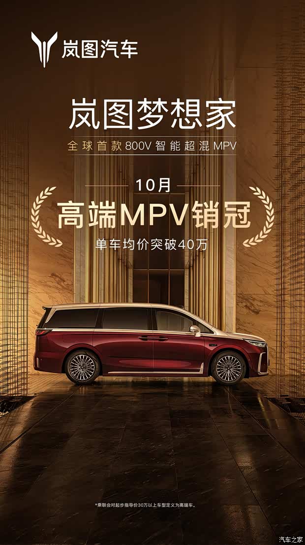 【2025年11月11日 武汉】11月11日,10月汽车销量榜单发布,岚图梦想家以单月6632辆的销量蝉联10月高端MPV销量断层,自2022年上市至今,岚图梦想家已累计交付超15万辆。