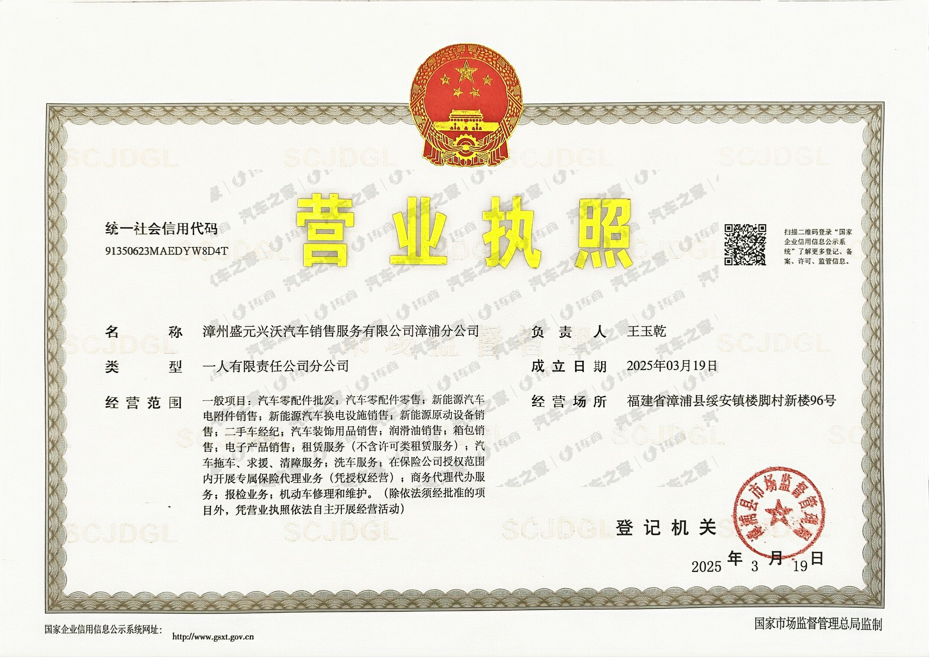 漳州盛元兴沃汽车销售服务有限公司漳浦分公司