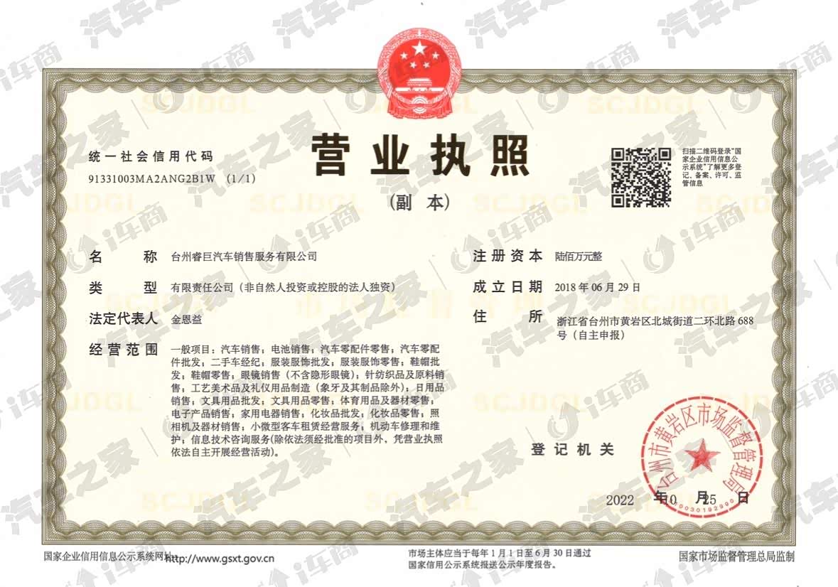 台州睿巨汽车销售服务有限公司