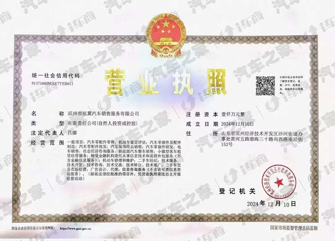 滨州市泓翼汽车销售服务有限公司