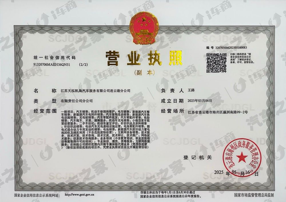 江苏天泓凯晟汽车服务有限公司连云港分公司
