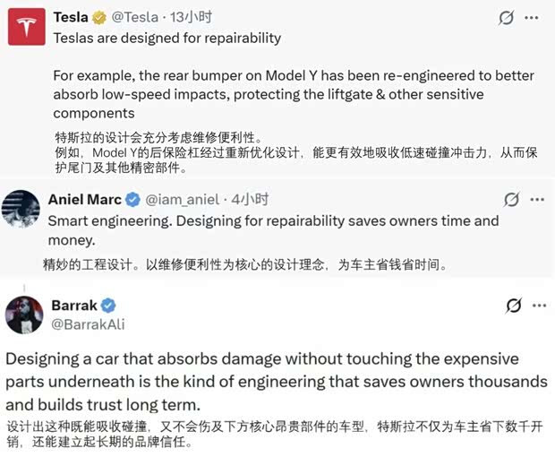 特斯拉设计负责人曾透露,Model Y尾部优化的核心就是「为维修便利设计」,让易损件承担撞击,保护高价值部件,这也是车企对车主用车体验的用心考量。