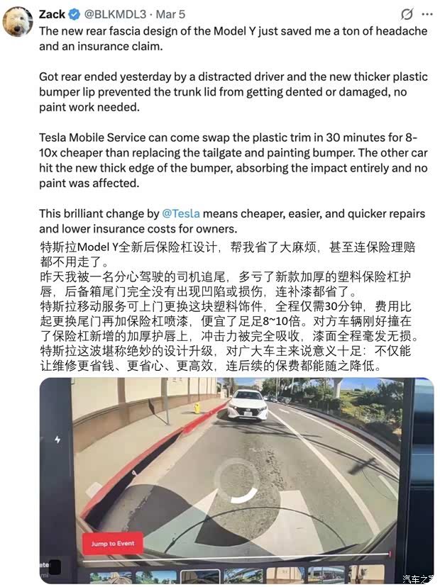 被追尾不用大修、不用补漆、不用等工期,特斯拉Model Y把低速碰撞维修的便捷性拉满了!