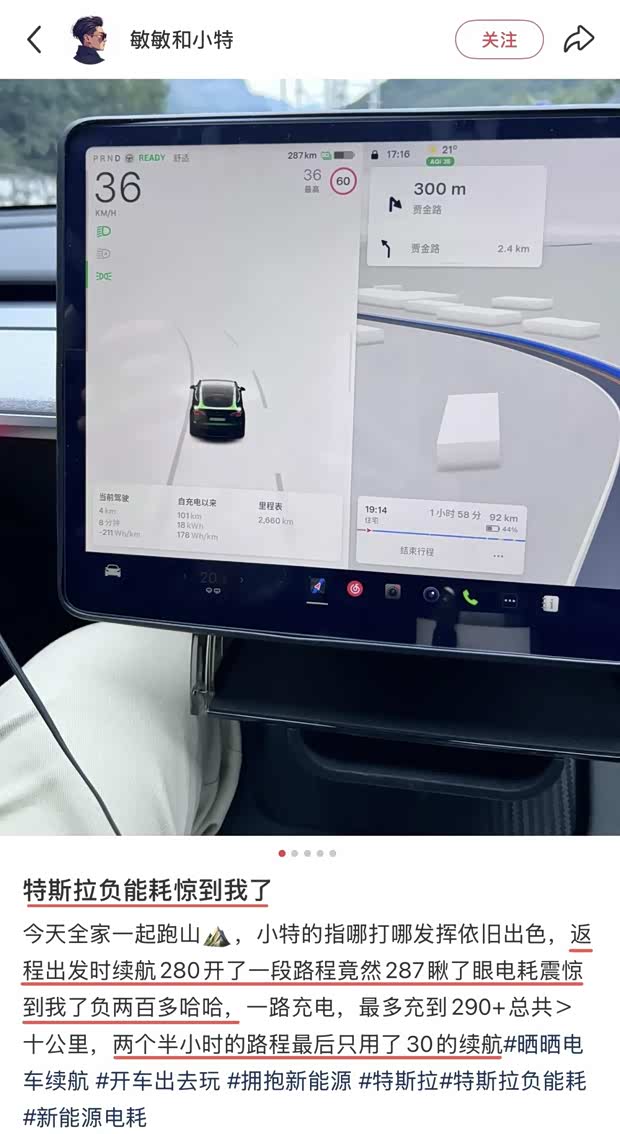 车主跑山实测实现“负能耗”,返程续航不跌反涨;60度电池能跑出同级80度电池的续航效果,长途补能次数更少。